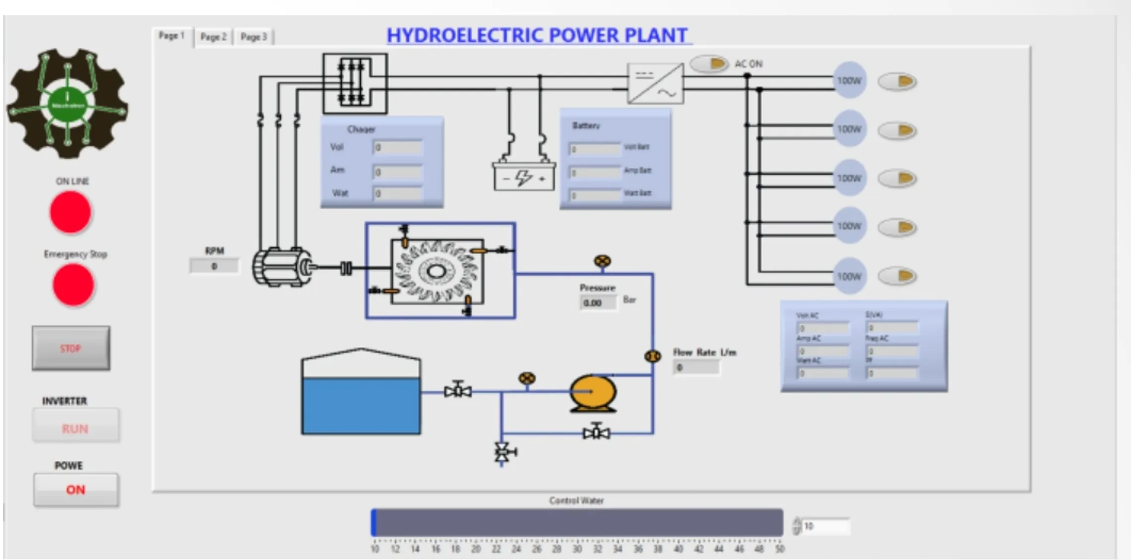 ​- จำลองการผลิตไฟฟ้าพลังน้ำครบวงจร (อ่างเก็บ, ท่อส่ง, กังหัน, Generator, Inverter)
